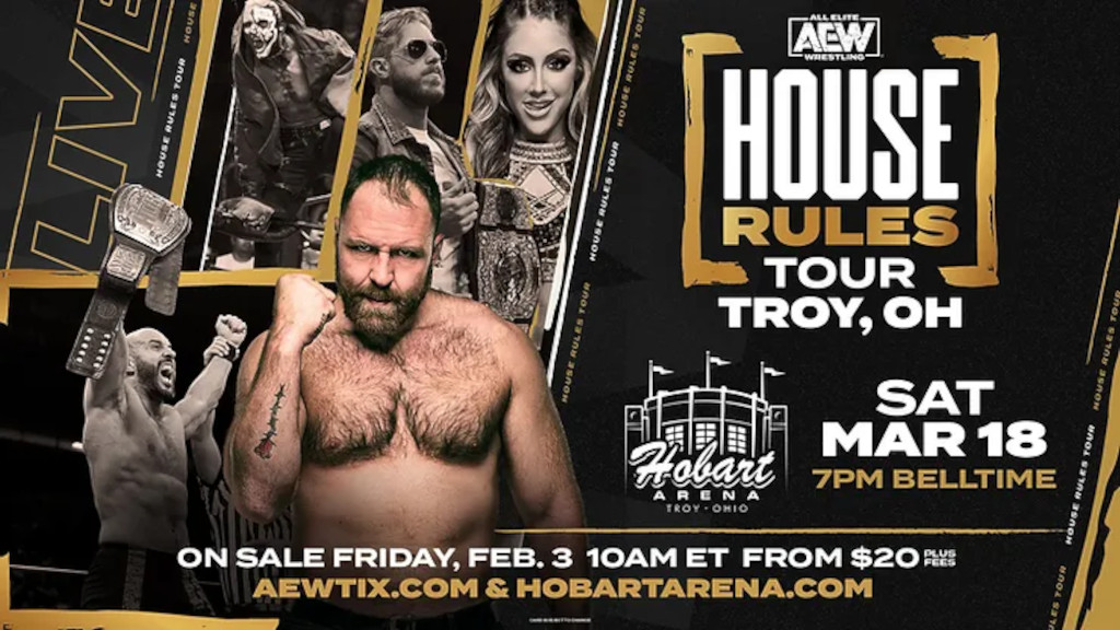 The first AEW House Rules show will take place on Saturday, March 18 in Troy, Ohio, at the Hobart Arena and will feature Ohio’s own Jon Moxley, Claudio Castagnoli, Dr. Britt Baker, Darby Allin, Orange Cassidy, and many more. Tickets for all AEW House Rules shows start at $20 plus fees and can be purchased at AEWTIX.com starting Friday, Feb. 3 at 10 a.m. ET. Further show dates will be announced in the coming weeks.