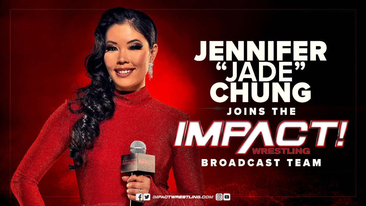 Impact Wrestling announced that Jennifer “Jade” Chung recently signed an official contract with the company. It was announced that Chung will be joining their broadcast team as the ring announcer for their Before The Impact series and as the host of the pre-shows for their pay-per-view events.