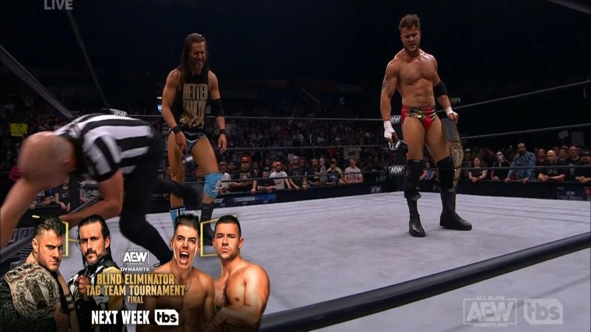 Wednesday’s AEW Dynamite show in Saskatoon, Saskatchewan, Canada featured two Semifinal matches for AEW’s Blind Eliminator Tag Team tournament.
