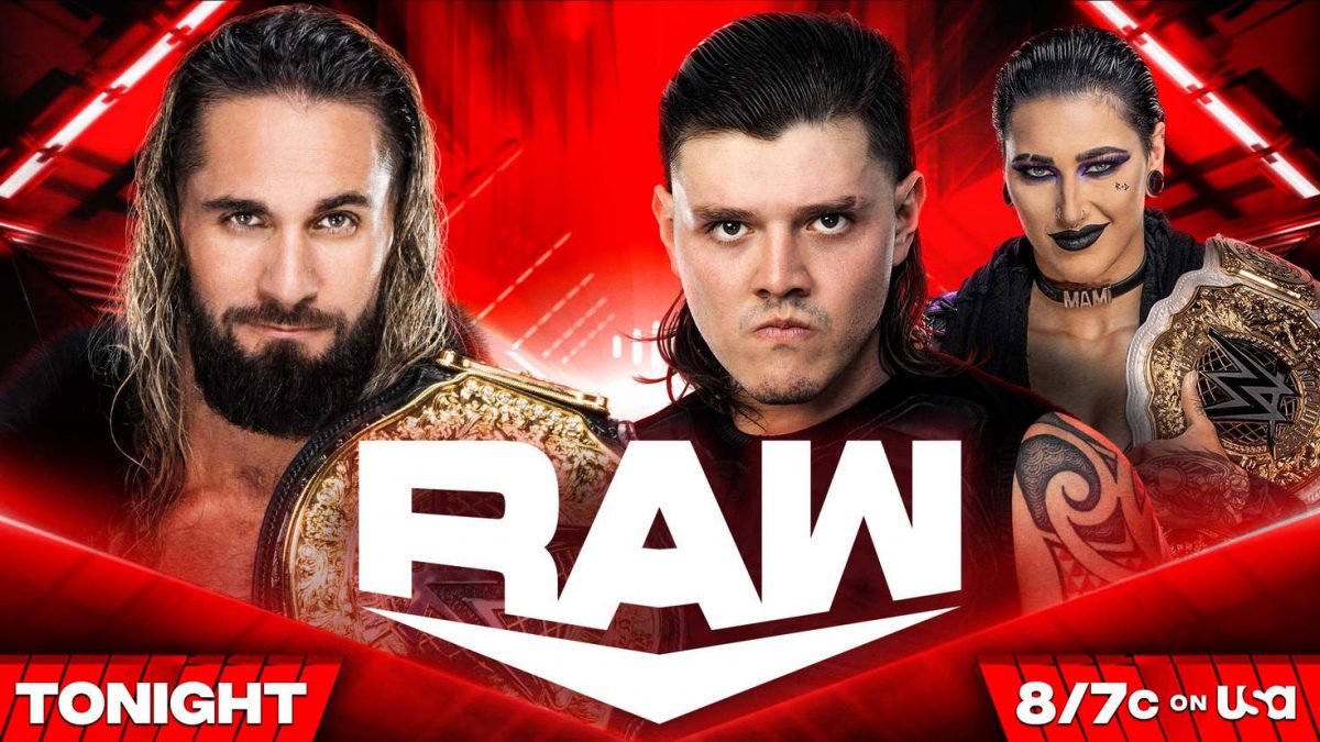 Video Package: “Dirty” Dominik Mysterio challenged Seth “Freakin” Rollins to a match last week on Raw, but it was stopped by Damian Priest. Priest went to cash in his Money in the Bank contract, but Finn Bálor ran in and knocked Rollins into Priest. This interrupted the cash-in. Priest and Bálor argued while Rollins gave “Dirty” Dom a Pedigree on the floor.