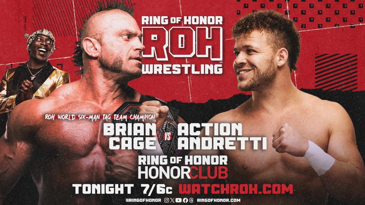 Cage hammered Andretti with strikes to start before Andretti staggered Cage with dropkicks. Andretti caught Cage with a pop-up rana for a nearfall before Nana tried to cut him off from the floor. Andretti sent Cage to the floor, but Cage caught a dive and sent Andretti into the post with a Gorilla Press.