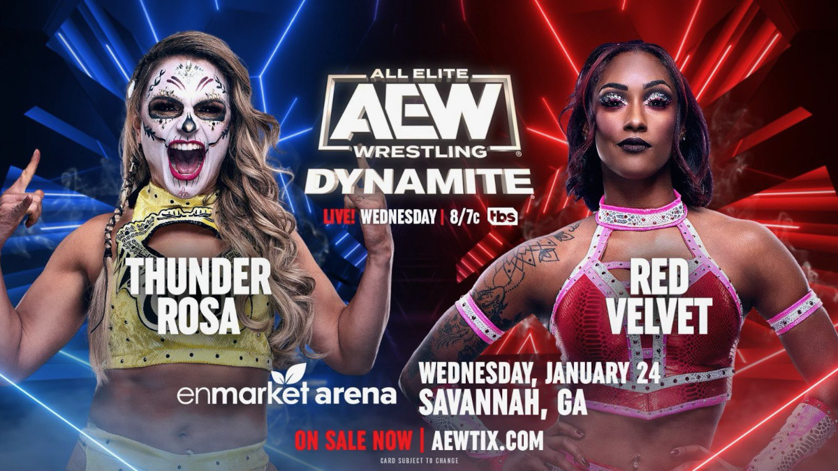 After a successful singles comeback at #AEWCollision, Thunder Rosa will return to Wednesday for her first Dynamite singles match since 2022 vs Red Velvet, who aims to stir it up TOMORROW! pic.twitter.com/O8WAsXElvC