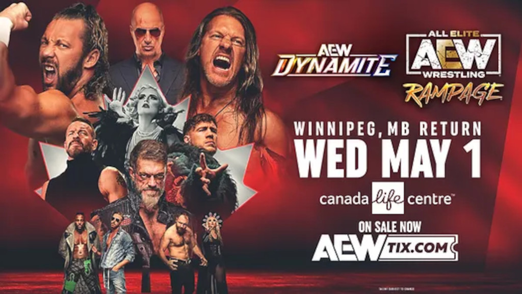 The AEW Dynamite & Rampage previously scheduled for April 10, 2024 at Canada Life Centre in Winnipeg has been rescheduled to May 1, 2024. Fans who have already purchased tickets will have their original tickets valid for admission to the event on May 1. Fans who cannot attend on the rescheduled date or who wish to seek a refund have until Tuesday, March 5 to request a refund from Ticketmaster or the original point of purchase. After March 5, all sales are final.