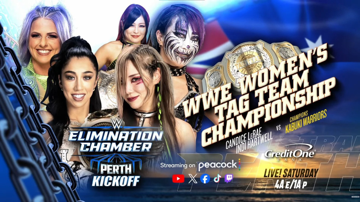 - Pre-show: WWE Women’s Tag Team Championship match of Candice LeRae & Indi Hartwell vs. Kabuki Warriors (Asuka & Kairi Sane) (c)