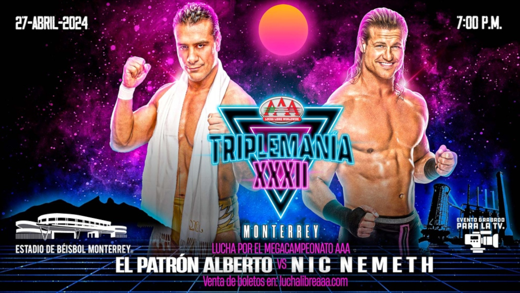 Lucha por el Megacampeonato AAA se pondrá en juego en la noche de #TriplemaniaXXXII 🔥#ElPatronAlberto 🆚 @NicTNemeth