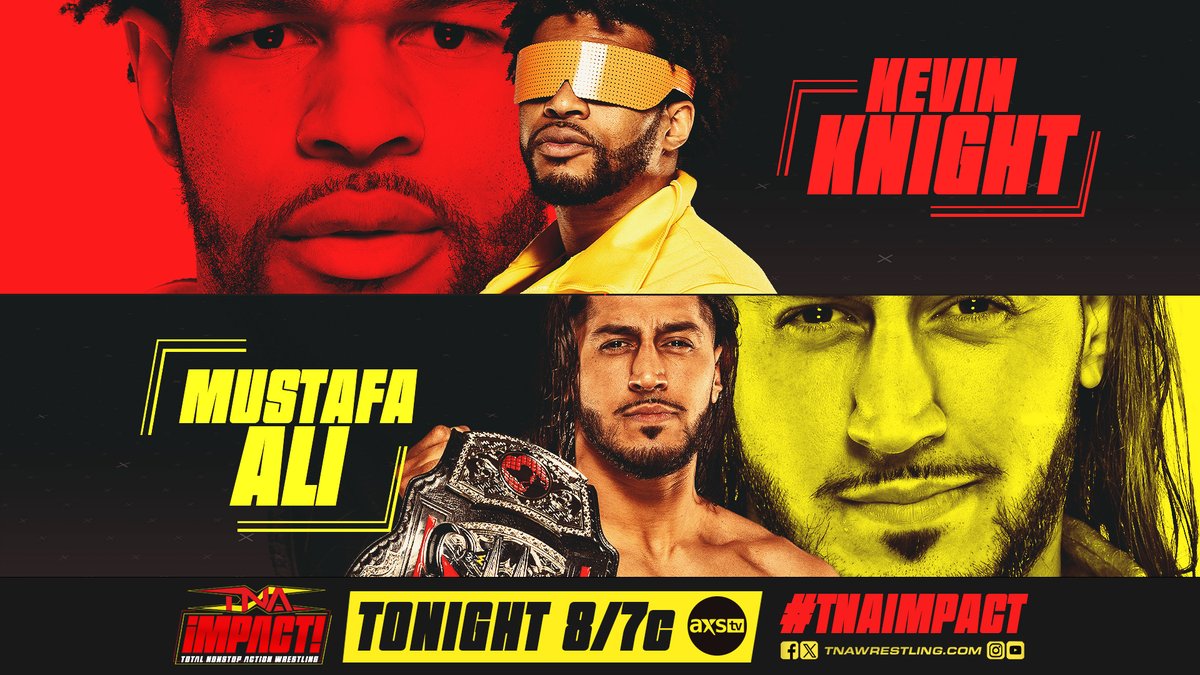 Before they’re on opposite sides in a six-man tag team match tomorrow night at Sacrifice, X-Division Champion Mustafa Ali goes one-on-one with Kevin Knight! Ali rolls through the ropes to take Knight down with a neckbreaker. Moments later, Ali hits a DDT for two. Knight picks him off the top with a head scissors off the top. Knight is in control following a no-look slingshot crossbody. Ali regains the advantage with a top rope Backstabber but it’s not enough to keep Knight down. Knight takes out Ali’s security force with a springboard crossbody to the outside. The Good Hands make their way to ringside but Chris Sabin and KUSHIDA even the odds. The brawl spills into the ring as the referee tries to restore order. Knight avoids the 450 Splash from Ali and hits Sky High for two. Sabin prevents Skyler from using the X-Division Title as a weapon. Instead, Ali uses it while the referee is distracted, allowing him to pin Knight for the win.