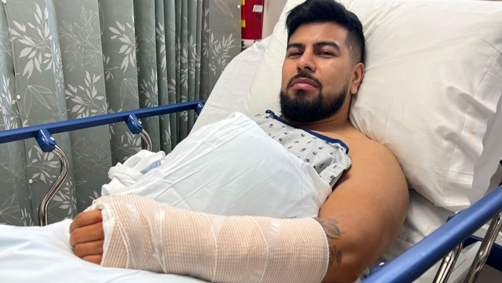 While the exact nature of his injury was not given, Del Toro posted a photo of himself lying in a hospital bed with his arm in a cast.