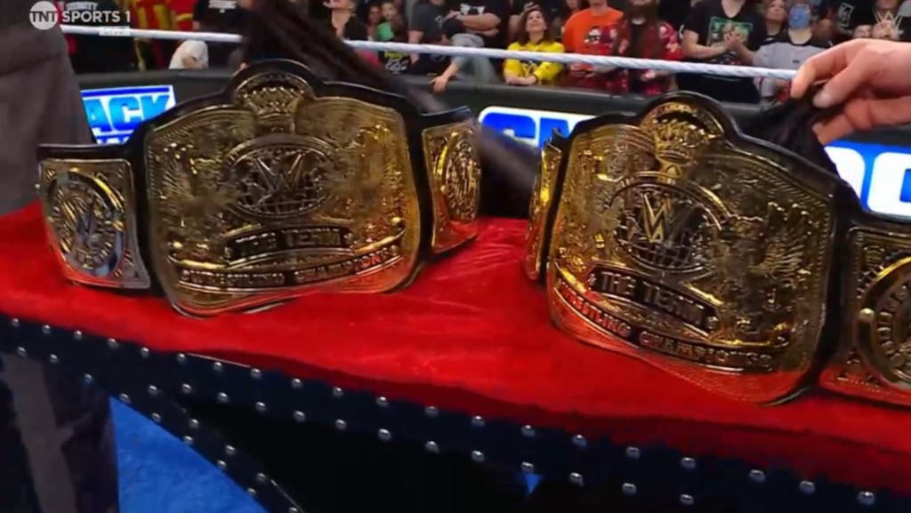 Friday’s SmackDown show also featured the official debut of newly designed SmackDown Tag Team Championship belts.