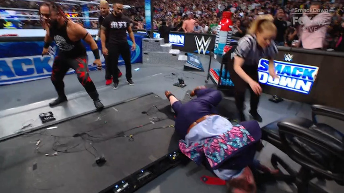 During the show, SmackDown General Manager Nick Aldis was seen in his office talking to Michin and granted her a match against Nia Jax. After Michin left, the Street Profits & B-Fab walked in and talked about Kevin Owens, Randy Orton, and Cody Rhodes being kicked out of the venue by police over their brawl with the Bloodline earlier. B-Fab and the Street Profits then talked about their own unfinished business with the Bloodline and tried to get a match made against them only to be rejected by Aldis.
