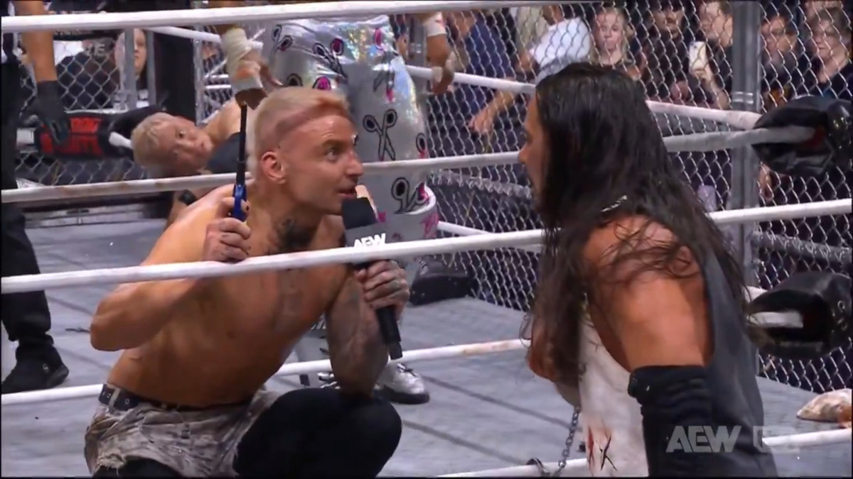 At the start of the show, Will Ospreay was seen in a parking lot with AEW backstage interviewer Alex Marvez trying to get a scoop from him. Ospreay noticed that someone had slashed the tires to his rental car and borrowed the keys from Marvez for his car. Ospreay and Marvez then drove off but not before Ospreay told Marvez that he’s never driven in America and Marvez giving a concerned yell in response.