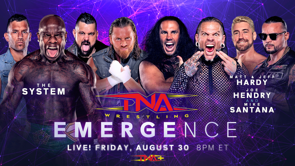 BREAKING: @DirtyDangoCurty, @TheMooseNation, @TheEddieEdwards & @Myers_Wrestling will clash with @MATTHARDYBRAND,@JEFFHARDYBRAND, @joehendry & @Santana_Proud at #TNAEmergence LIVE Friday August 30 on TNA+!