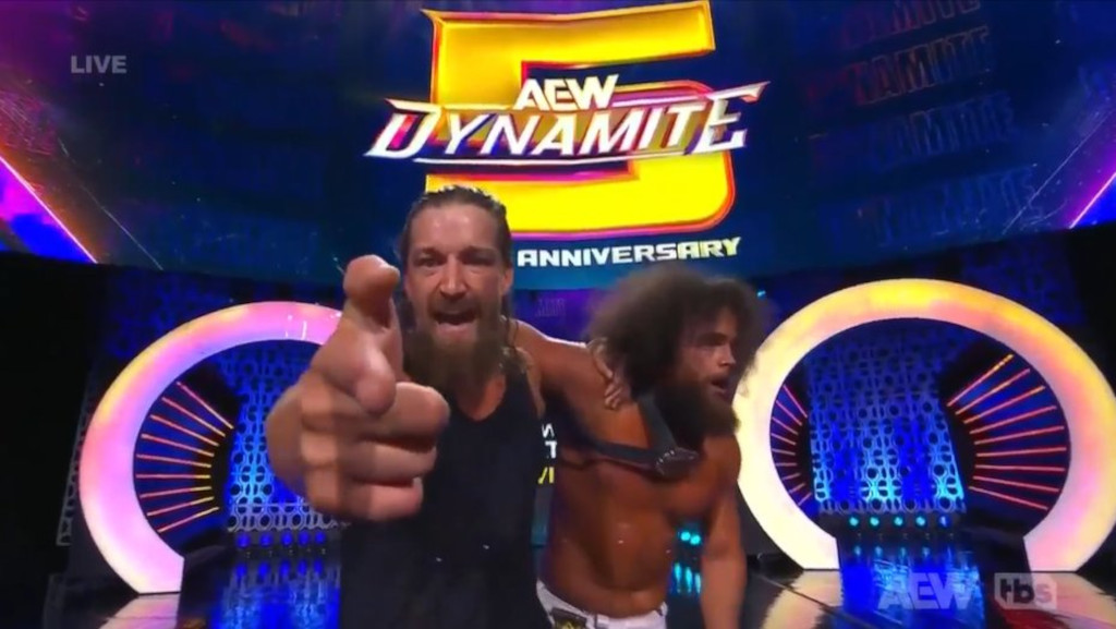 Watch #AEWDynamite's 5th Anniversary LIVE on TBS!@BryanDanielson | @ClaudioCSRO | @BASTARDPAC | @MarinaShafir | @JonMoxley | @WheelerYuta pic.twitter.com/nnSIrXbNqv