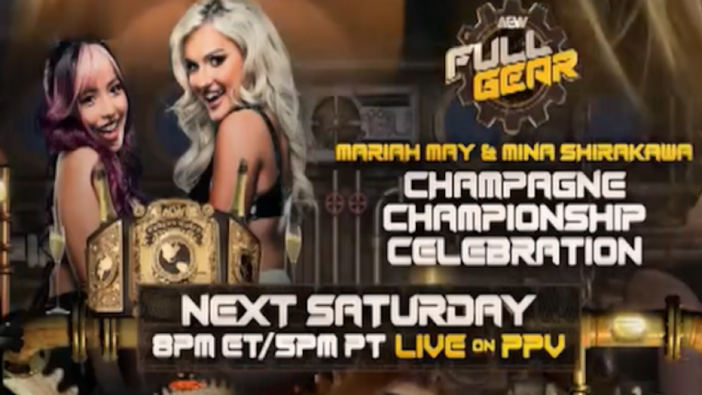 NEXT WEEK at #AEWFullGear, the #AEW Women's World Champion Mariah May will finally get her champagne championship celebration alongside Mina Shirakawa!