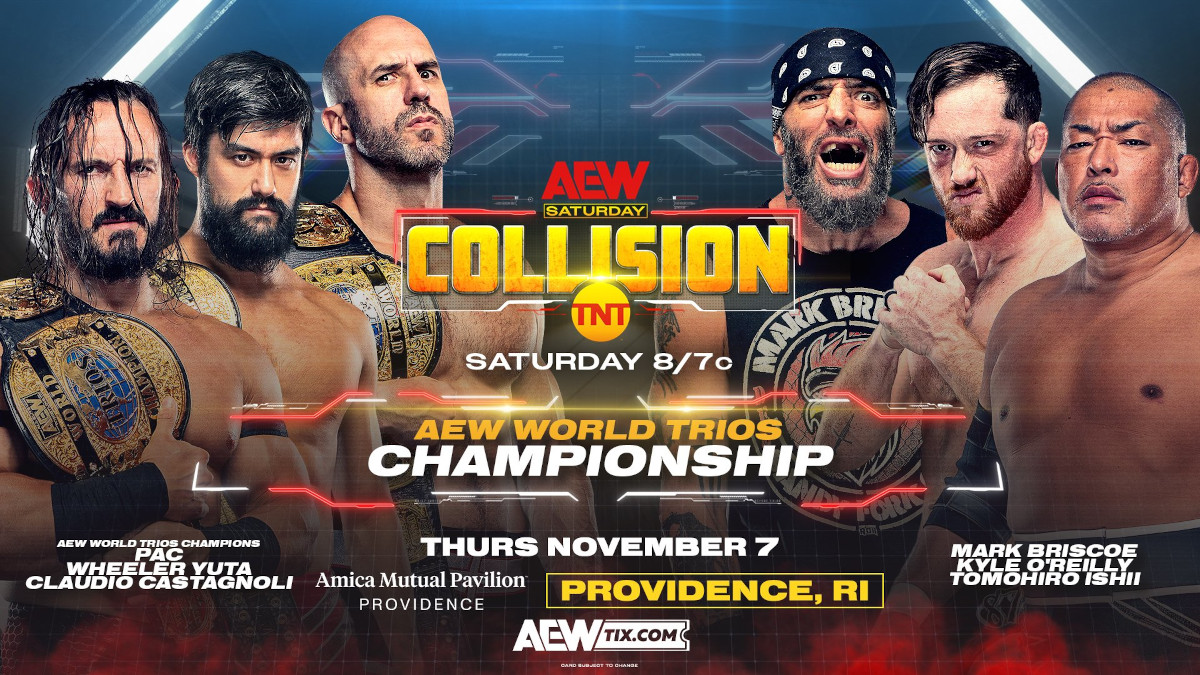 See #AEWCollision LIVE TOMORROW before it airs Saturday 8/7c on TNT!@The_AMPPVD | Providence, RI#AEW World Trios Championship: