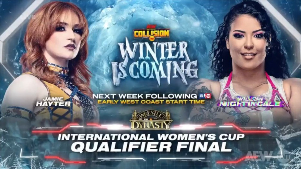 La semana que viene en Collision Winter Is Coming sera Willow Nightingale vs Jamie Hayter!#AEWCollisionpic.twitter.com/zRDeKbiOL7