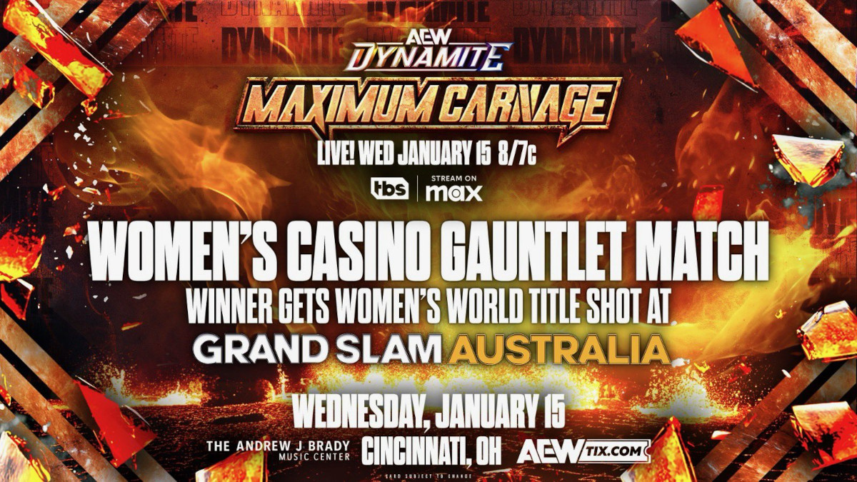 AEW CEO Tony Khan announced one new match for the card of the AEW Dynamite Maximum Carnage show, which takes place on January 15th at The Andrew J. Brady Music Center in Cincinnati, Ohio.