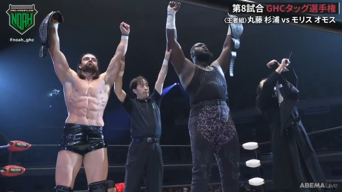 Wednesday’s The New Year 2025 event for Pro Wrestling NOAH at the Nippon Budokan in Tokyo, Japan featured Jack Morris and Omos defeating Naomichi Marufuji & Takashi Sugiura to become the new GHC Tag Team Champions.