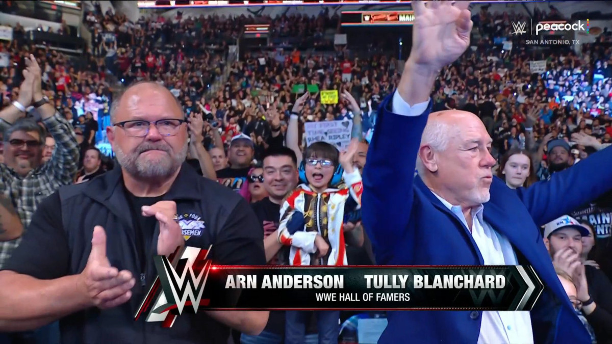 Prior to the start of the WWE World Heavyweight Championship match between Jey Uso and Gunther, WWE Hall of Famers Arn Anderson and Tully Blanchard were shown in the crowd.