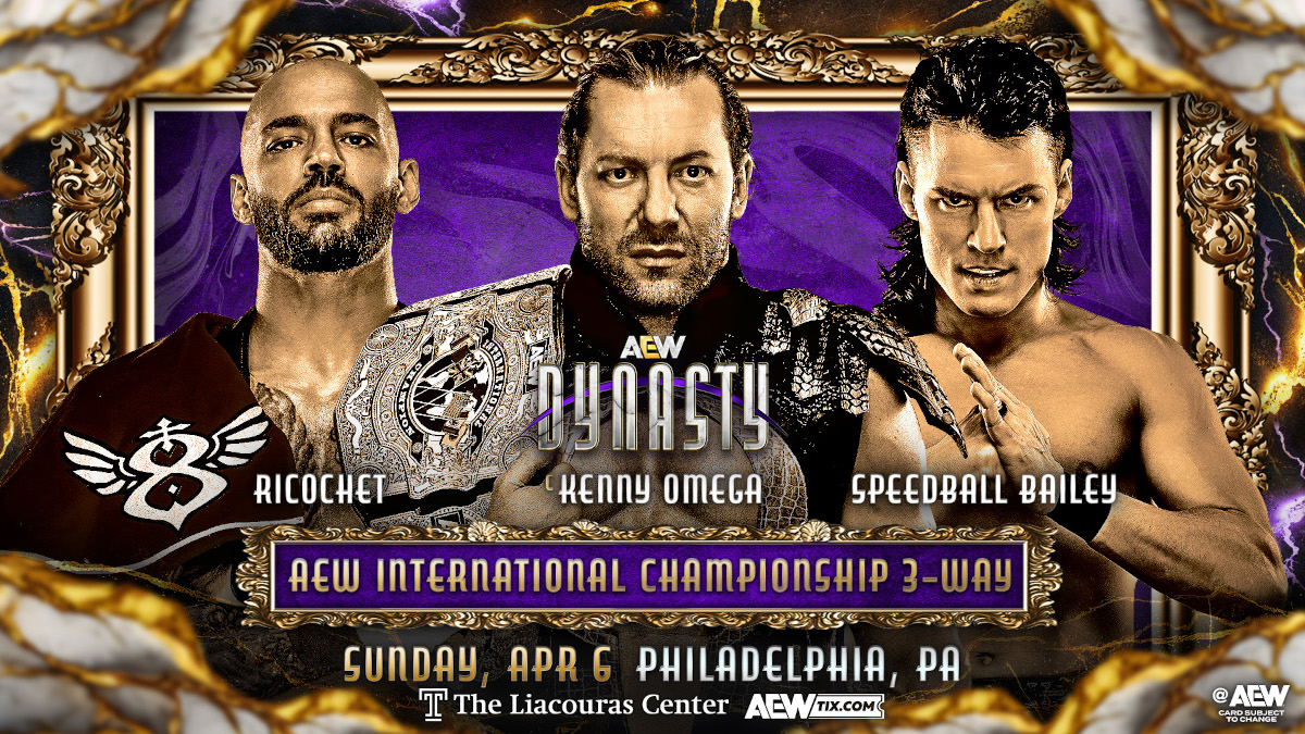 - AEW International Championship Three-way match – Ricochet vs. “Speedball” Mike Bailey vs. Kenny Omega (c)