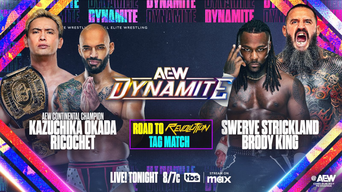 This new match announced was a Road to Revolution Tag Team match of Kazuchika Okada & Ricochet vs. Swerve Strickland & Brody King.