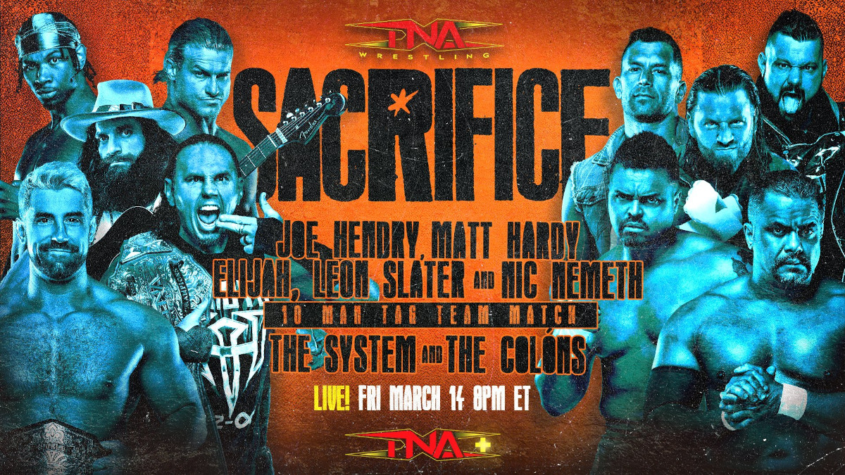 BREAKING: @MATTHARDYBRAND, @JoeHendry, @LEONSLATER_,@_Iam_Elijah_, and @NicTNemeth team up to take on The Colóns, @DirtyDangoCurty, @TheEddieEdwards & @Myers_Wrestling at #TNASacrifice on March 14 LIVE on TNA+ from the El Paso County Coliseum in El Paso, Texas!