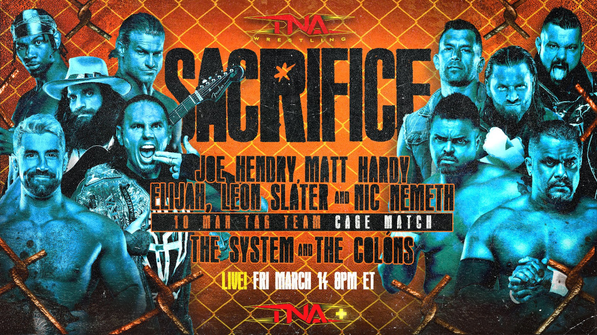 BREAKING: The 10-Man Tag Team match at #TNASacrifice will now be held inside a STEEL CAGE LIVE on TNA+ on March 14 in El Paso.