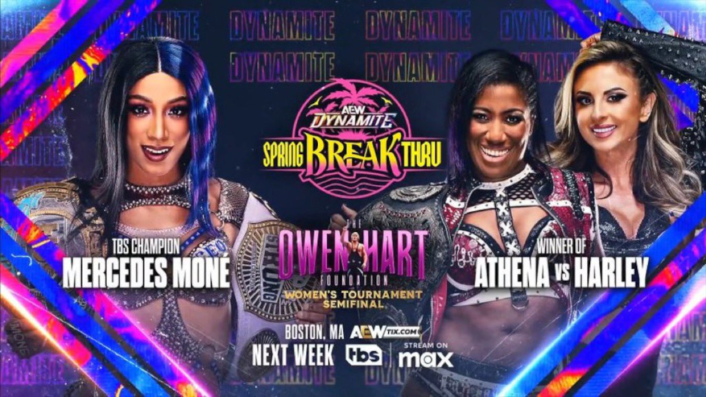 Wednesday’s AEW Dynamite show also featured one new match for the card of next week’s Spring BreakThru show on April 16th at the MGM Music Hall At Fenway in Boston, Massachusetts.