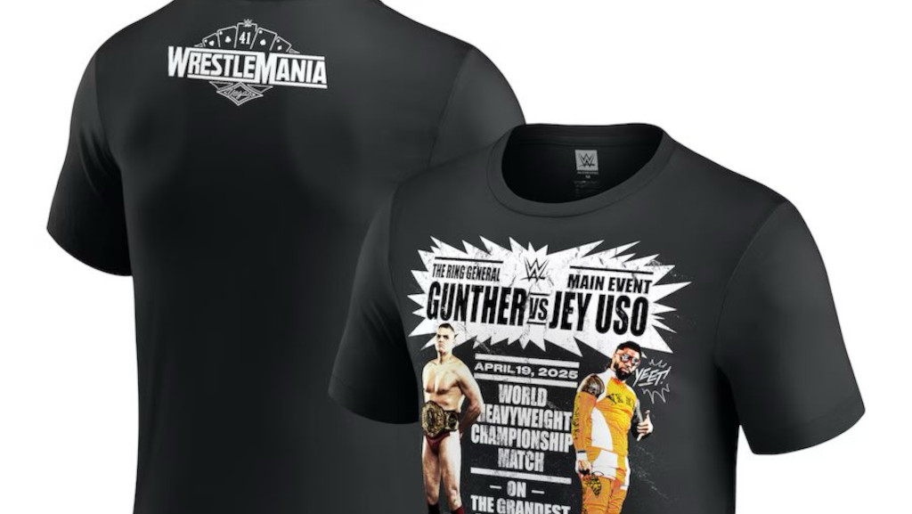 In regards to the WWE World Heavyweight Championship match of Jey Uso vs. Gunther (c) and the WWE Women’s Championship match of Charlotte Flair vs. Tiffany Stratton (c), both shirts listed those matches to be taking place on Night 1 of WrestleMania 41 on April 19th.