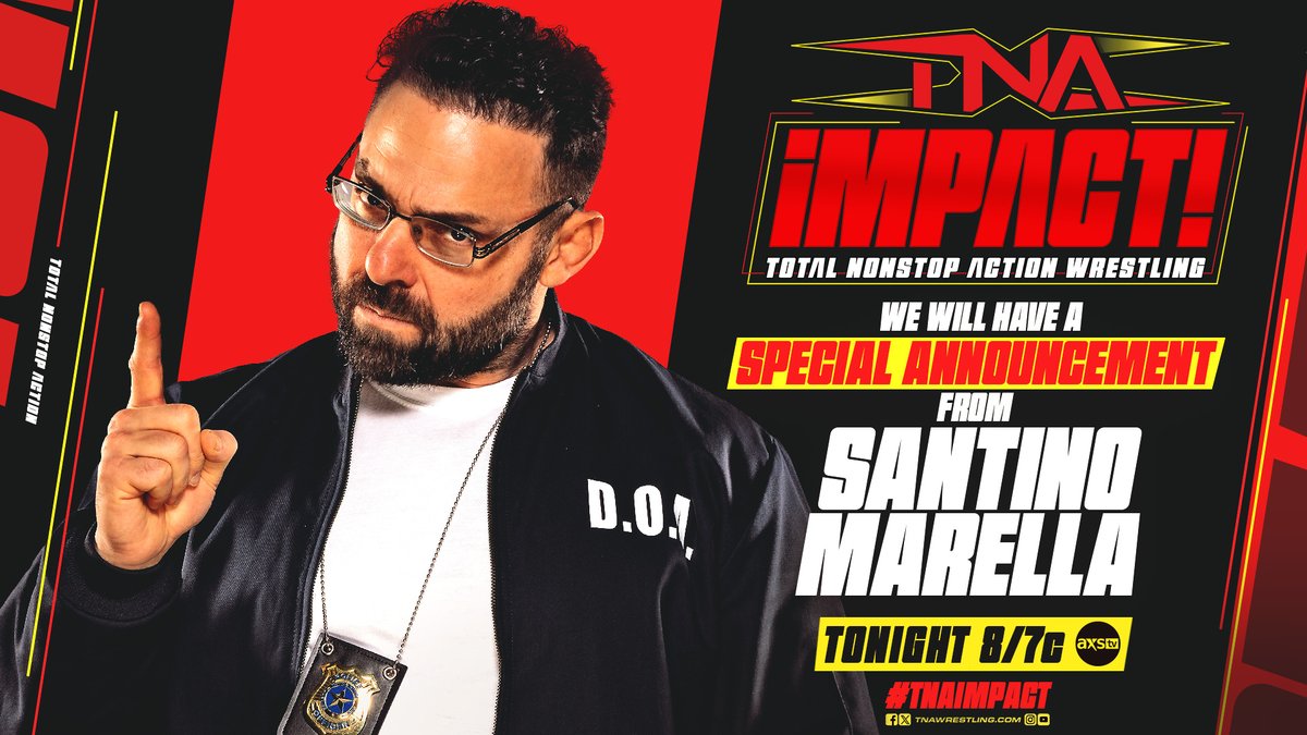 Backstage, Mike Santana introduces Derek to TNA Director of Authority Santino Marella and walks off. Santino tells Derek he’ll show him around. Hannifan and Rehwoldt promote Santino’s “groundbreaking announcement” for later, and the show heads into another commercial break.