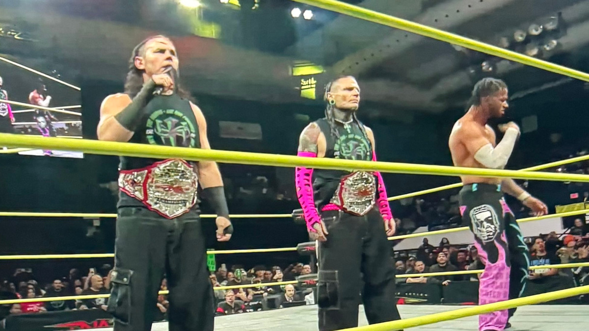 “Yes, absolutely. Every time, not even like when we do stuff on TV, every time I see them walk in the building, I’m pinching myself. I go, oh my God, that’s Matt and Jeff Hardy. Especially for a kid like me where Matt and Jeff were my guys growing up. I think it’s it’s very clear the Hardy influence in everything that i do, whether that’s my gear, whether that’s my my my finishing move, right? Like everything, you can see the the Hardy influence um in my work. So not only to get the opportunity to to tag with them once, but to get to continue to work with them and kind of build that relationship with them, not only as as performers but as people as well, and just get to know Matt and Jeff and for Matt and Jeff to get to know me, it really is a dream scenario, man. Again, not many 20 year olds get to work with their heroes. So I’m everything that we’ve been talking about. I’m just so, so grateful for all of these opportunities that I’m getting. It really is a dream come true just to be around Matt and Jeff and pick their brains on what they think of my stuff and what they think of stuff that’s going on in the world of wrestling.”