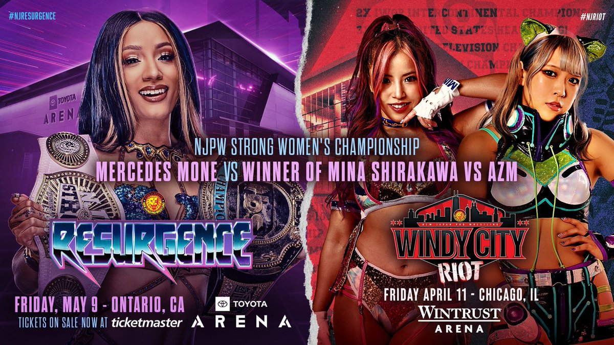 Official for Resurgence May 9!@MercedesVarnado will defend the #njpwSTRONG Women’s Championship against the winner of @MinaShirakawa vs @azumikan1411!