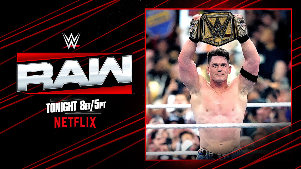 Undisputed WWE Champion John Cena, who stands alone in wrestling history with the most World Championships at seventeen, surpassing “The Nature Boy” Ric Flair’s sixteen last night at WrestleMania 41, makes his entrance. The colorful logos in his entrance are gone. It is a black screen that simply displays the text, “John Cena.” Pyrotechnics go off as he holds the title up in the ring.