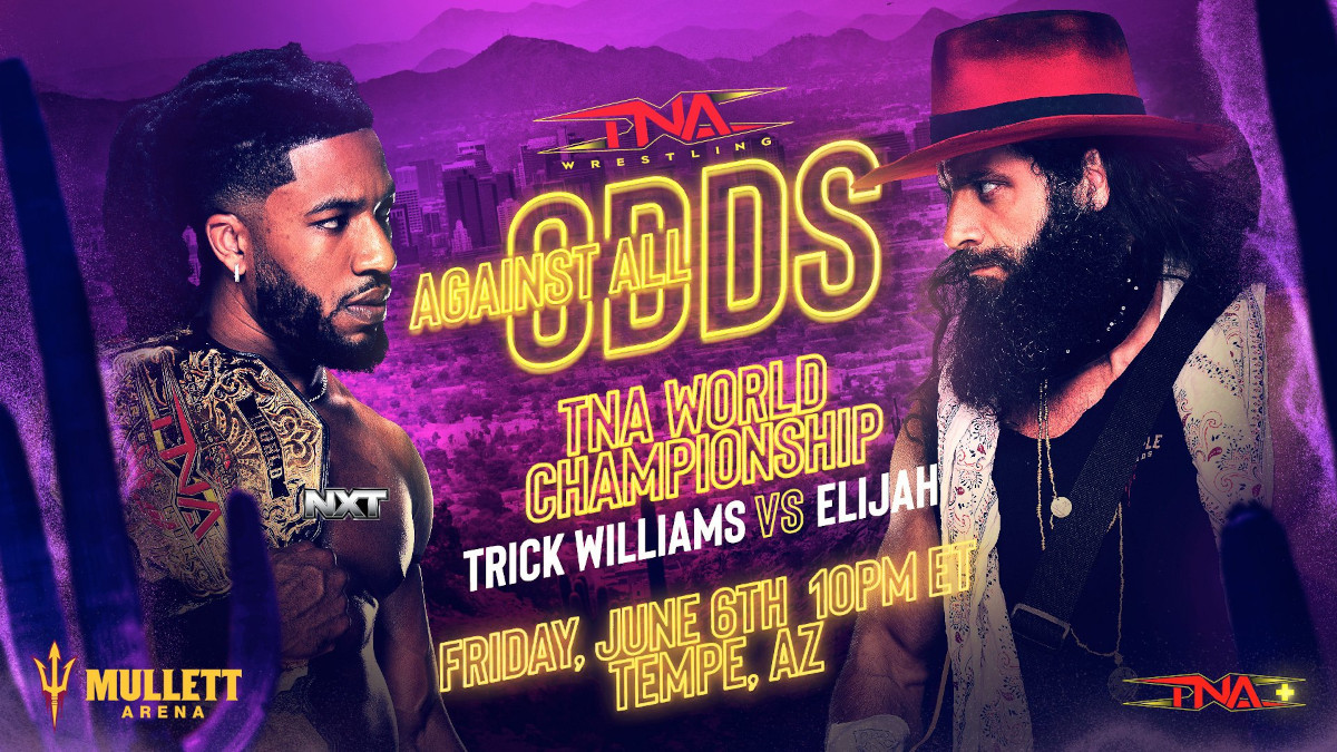 BREAKING: After tonight’s #WWENXT, @_trickwilliams will defend the TNA World Title against @_Iam_Elijah_ at #TNAAgainstAllOdds THIS FRIDAY LIVE on TNA+ from the Mullett Arena in Tempe, Arizona!