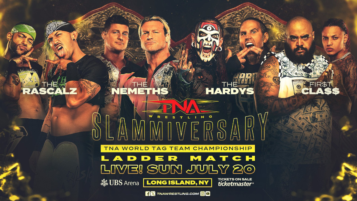 This new match confirmed was a TNA World Tag Team Championship Four-way Ladder match of The Hardys (Matt & Jeff Hardy) vs. FIR$T CLA$$ (KC Navarro & AJ Francis) vs. The Rascalz (Trey Miguel & Zachary Wentz) vs. The Nemeths (Ryan & Nic Nemeth) (c).