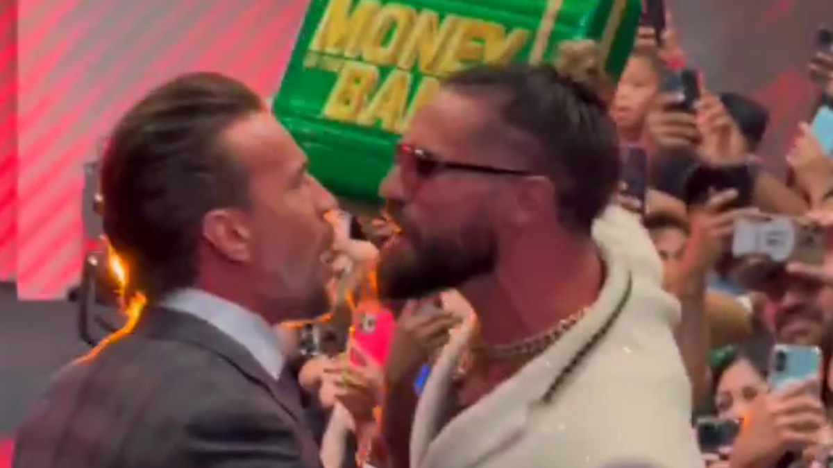 This incident involved Rollins coming out for his entrance holding his Men’s Money in the Bank briefcase leading to CM Punk coming out and confronted Rollins getting up into his face. Punk and Rollins exchanged heated words but were separated by officials and security before the altercation could turn physical.