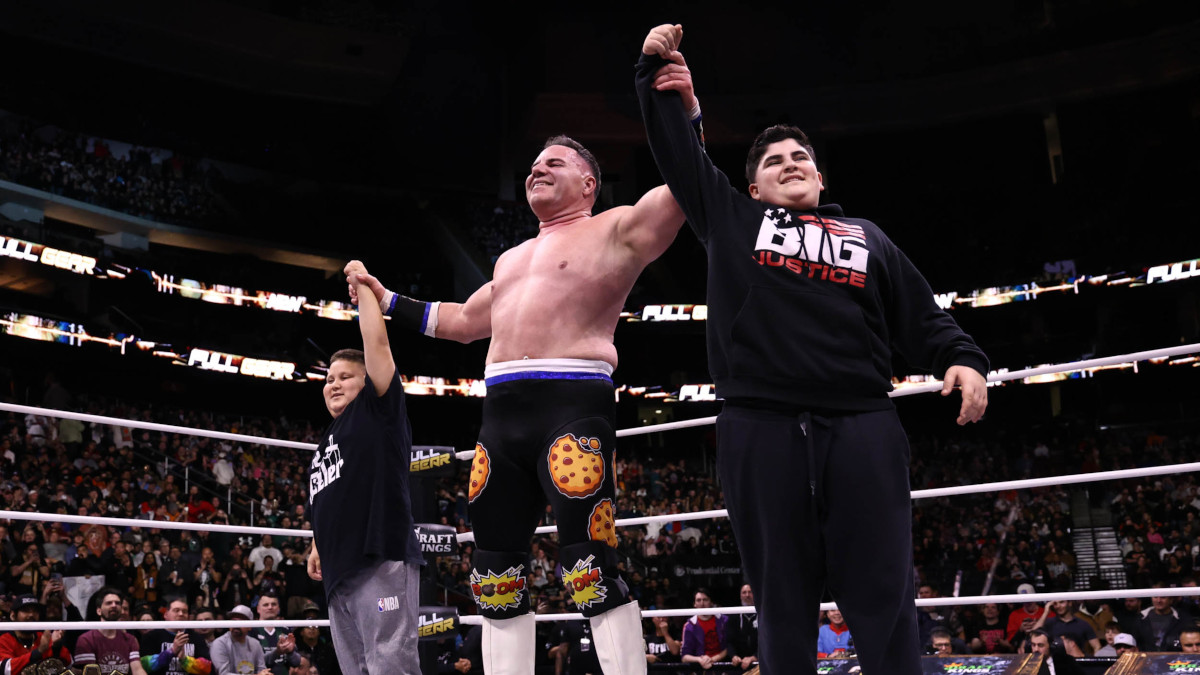In a promo video, AJ issued the challenge stating that it doesn’t matter which member of the Don Callis Family faces him at the show. AJ also stated that he will have his son Big Justice and their friend The Rizzler accompanying him for the match.