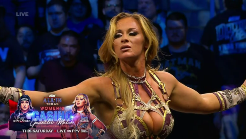 Wednesday’s AEW Dynamite show also featured Megan Bayne earning the #2 spot for the Women’s Casino Gauntlet match at All In Texas, which takes place on July 12th at the Globe Life Field in Arlington, Texas.