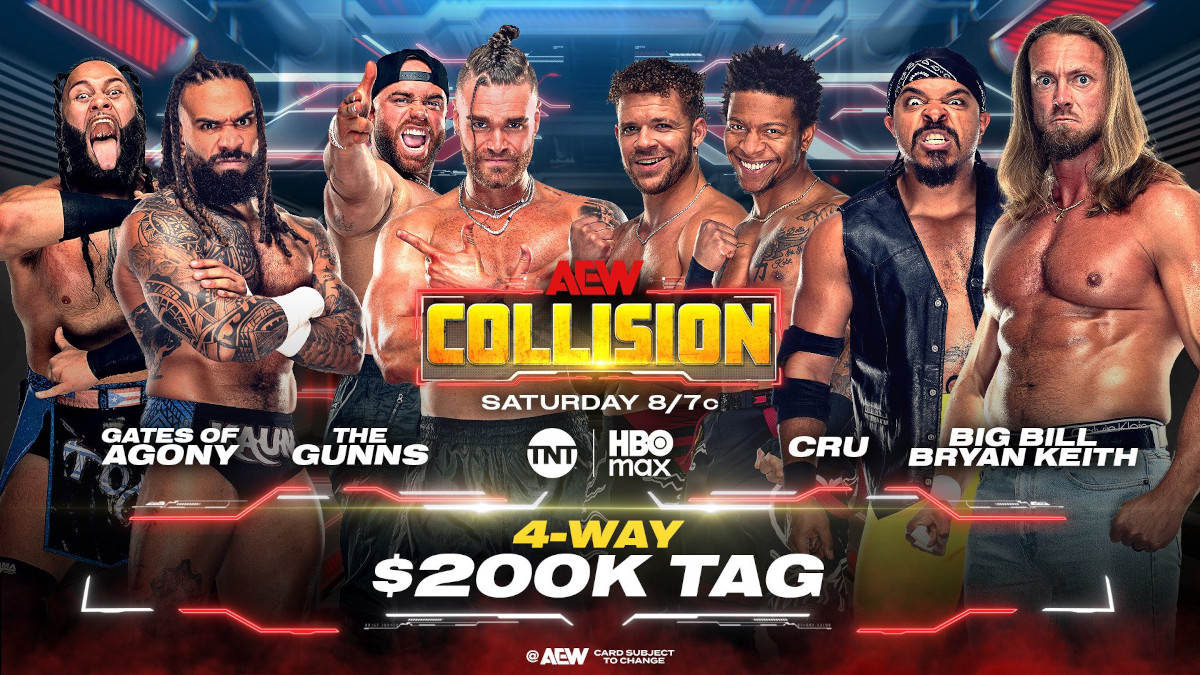 This new match announced was a Four-way $200K Tag Team match of Gates of Agony (Toa Liona & Bishop Kaun) vs. The Gunns (Austin & Colten Gunn) vs. Cru (Action Andretti & Lio Rush) vs. Big Bill & Bryan Keith.