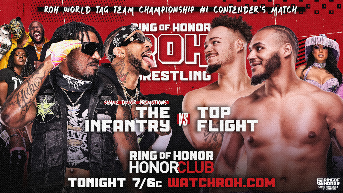 The Sons of Texas (Dustin Rhodes and Sammy Guevara) have been tag team champions in ROH since August 17th, 2024. They have defended against the likes of The Undisputed Kingdom, The Righteous and The MxM Collection. Their next challengers will be revealed tonight as The Infantry and Top Flight face off. These teams have a long history and if they can keep it clean, this should be an absolute banger of a match.