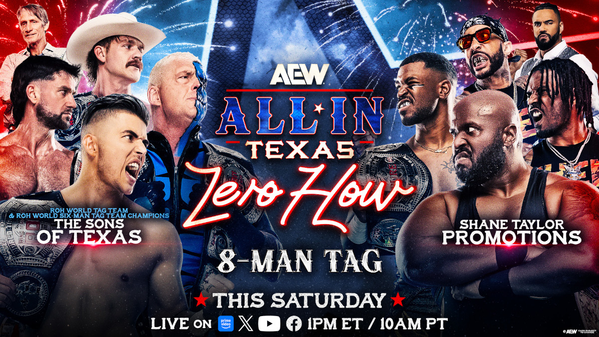 This new match announced was an Eight-Man Tag Team match of The Sons of Texas (Dustin Rhodes, Sammy Guevara, & The Von Erichs (Ross & Marshall Von Erich)) vs. Shane Taylor Promotions (Shane Taylor, Lee Moriarty, & The Infantry (Carlie Bravo & Capt. Shawn Dean)). It was also announced that this match will be taking place on All In Texas’ Zero Hour pre-show.