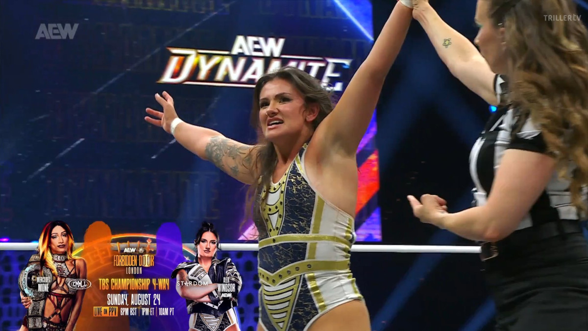 Wednesday’s AEW Dynamite show also featured one qualifying match for the TBS Championship Four-way match at AEW x NJPW Forbidden 2025, which takes place on August 24th at The O2 Arena in London, England.