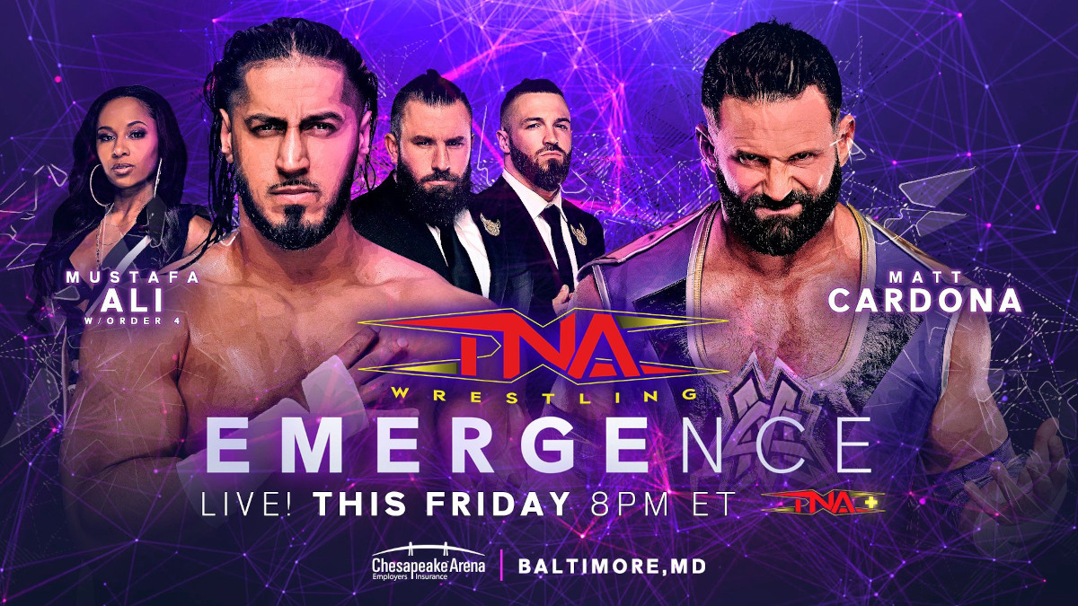 BREAKING: @MustafaAli_X will face @TheMattCardona at #TNAEmergence LIVE this Friday at 8pm ET from the Chesapeake Employers Insurance Arena in Baltimore, MD.