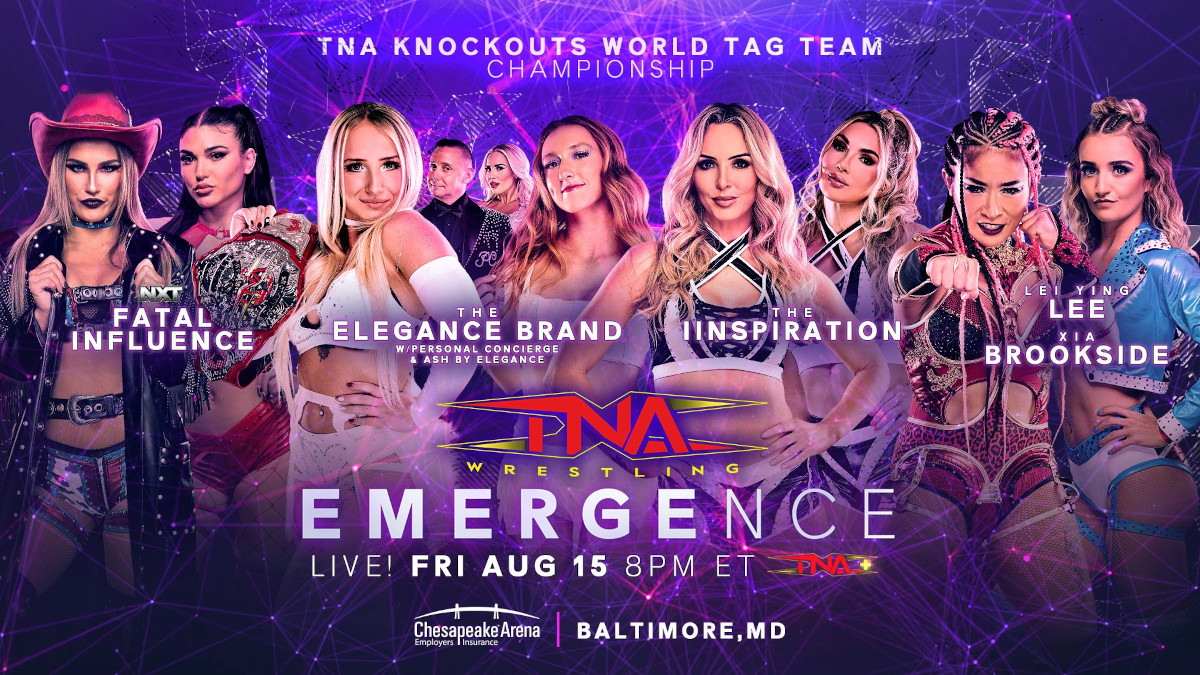 BREAKING: @Heathereckless and @justmaggielee defends the TNA Knockouts World Tag Team Titles against Fatal Influence, The IInspiration, and the team of @TheLeiYingLee and @XiaBrookside at #TNAEmergence on August 15 LIVE on TNA+ from the Chesapeake Employers Insurance Arena in… pic.twitter.com/gKU0fIytc2