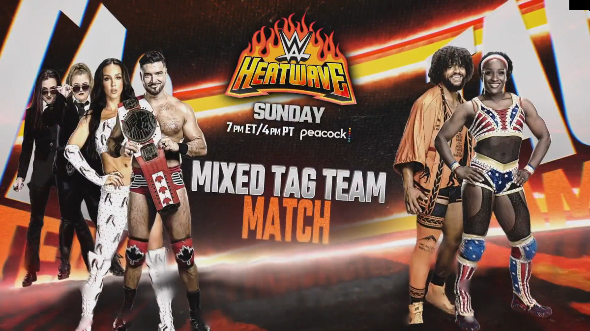This new match was initially setup over recent weeks shows over the bad blood issues between Page & Green and Heights & Steele. During tonight’s show, Page and Green came out to the ring with the Secret Hervice accompanying them for a Canada and United States peace treaty. Page grabbed a microphone and brought up how things usually happen in NXT whenever a table is in the ring for a segment, which led to the Secret Hervice tossing the table out of the ring. This led to Heights & Steele coming out and sat across Page & Green. After a lot of back-and-forth bickering between the two groups, NXT GM Ava came out and announced a Mixed Tag Team match between the two at NXT Heatwave.