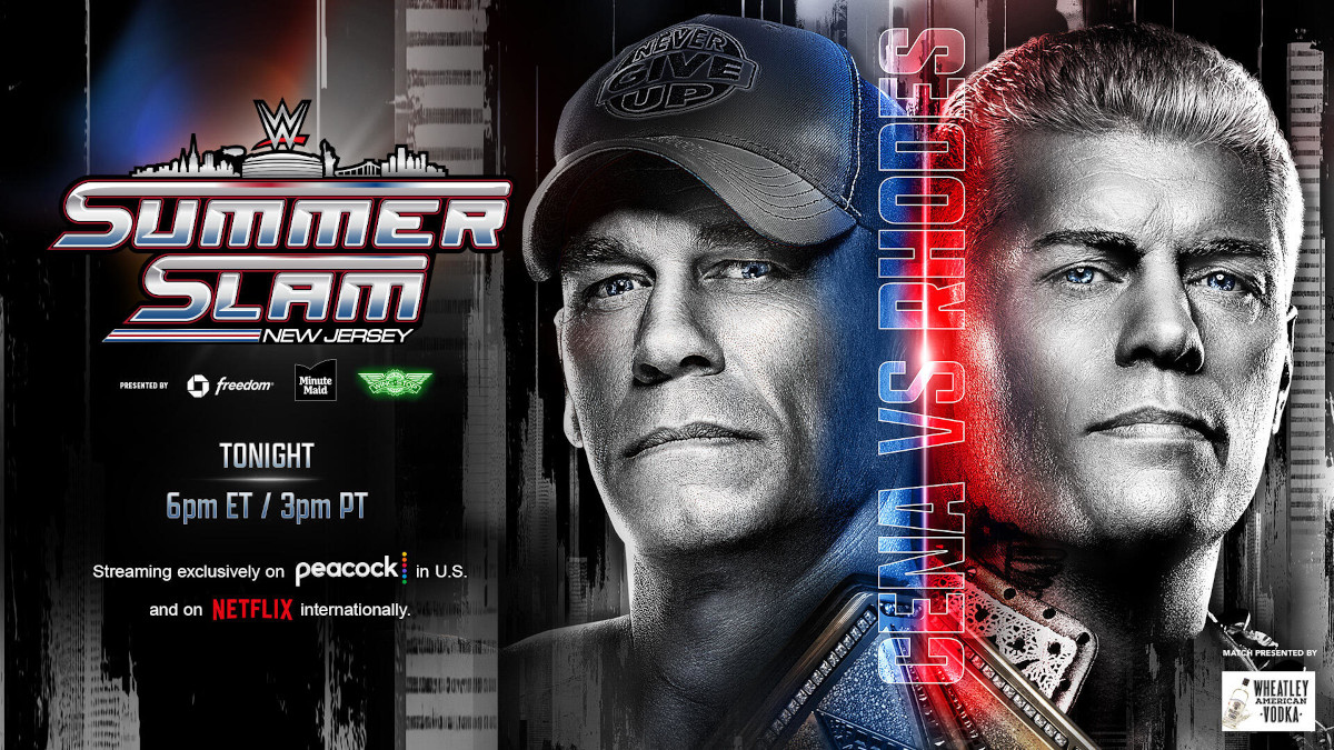 A loud “Cena” chant picks up as the match starts. This is the final SummerSlam match of John Cena’s career. Cena and Rhodes slowly step up to each other and stare. Cena then hugs Rhodes and whispers something to him. They start brawling, and Rhodes punches him in the corner. Cena sends Rhodes out of the ring. Rhodes quickly grabs Cena and whips him into the steel steps. They tumble over. Rhodes bounces Cena’s face off the apron. Cena comes back by reversing a whip into the other set of steel steps. Cena walks over to Tyrese Haliburton, who is recovering from Achilles Tendon surgery, does the “You can’t see me” taunt to a nice reaction, and takes a crutch. Cena cracks the crutch off Rhodes’ spine. Cena puts the bottom half of the steps into the ring and waits for Rhodes to get up. Cena sets up for an Attitude Adjustment, but Rhodes gets out and scoop slams Cena onto the steps! Rhodes heads to the top rope, but Cena pops up and shoves him to the floor.