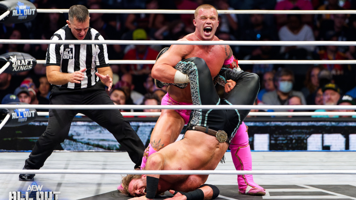 “Yeah, I think being 26, my whole kind of career I’ve been- I’ve been the young guy and it’s kind of- I’ve always heard that I’m… I have all this potential that in the future I’ll be a world champion. I am at a point now where I really do think I’m hitting my stride. I think it’s important for me to kind of shake that, that one day I’ll be great one day I’ll be whatever. Cause I think I’m great now. Yeah, it was more so to test myself as well. I wanted to see if I was ready for that. I mean, I can believe it as much as I want in my own head, but I kind of have to prove it to myself as well. So it was a huge test. I wanted to go out there against the guy in AEW. I did that and I took him, it took 40 minutes for him to beat me. So yeah, I think I swum. I think I proved that I belong in the main event. I didn’t win the World Championship, but I think I proved to a lot of people that it could be coming sooner rather than later.”
