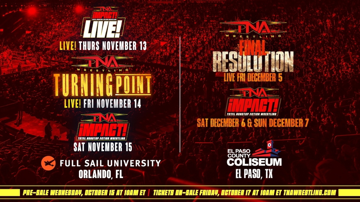 For tickets and to sign up for the pre-sale for the TNA Wrestling live events in Orlando and El Paso, go to tnawrestling.com.