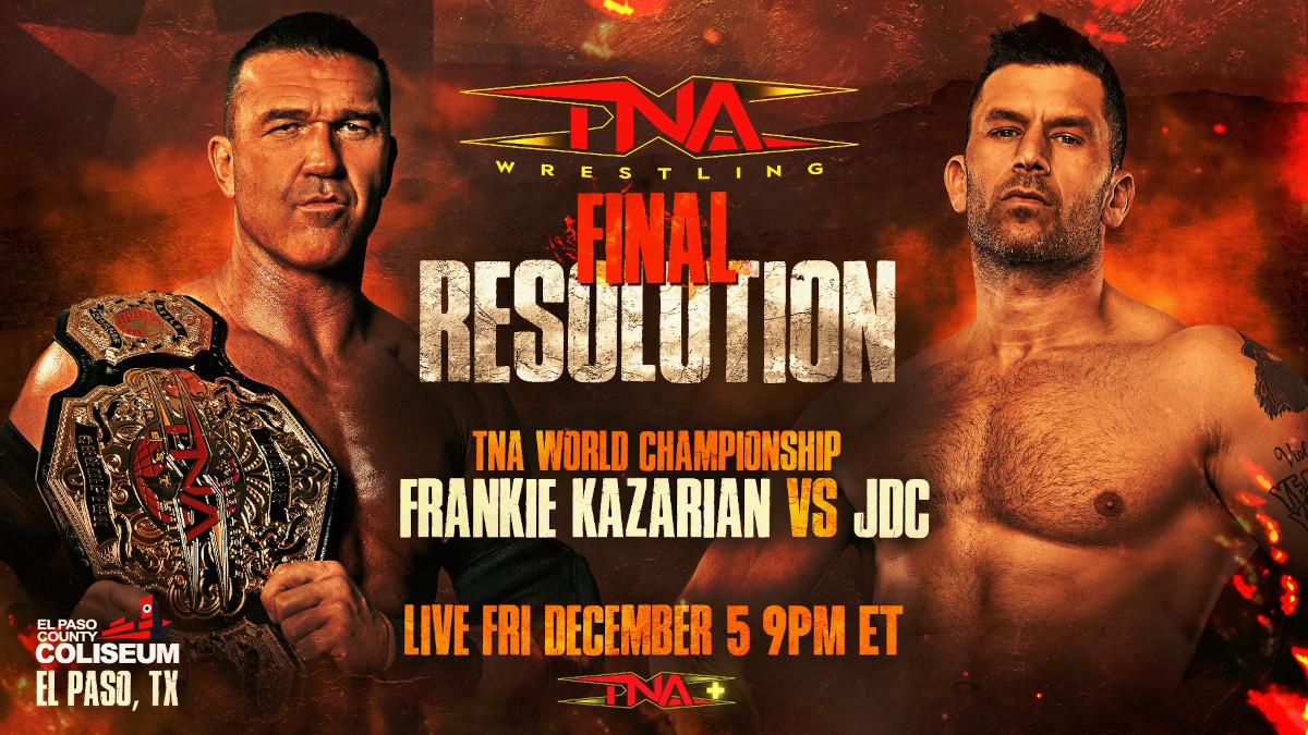 BREAKING: @FrankieKazarian will defend the TNA World Championship against @DirtyDangoCurty LIVE Friday, December 5 at 9pm ET from the El Paso County Coliseum at #TNAFinalResolution!