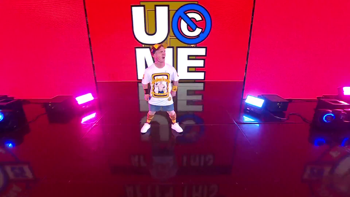 This led to Cena’s music playing but instead of Cena coming out, a mini John Cena came out instead as Mysterio started laughing over fooling the crowd and seeing a small version of Cena walking towards him.