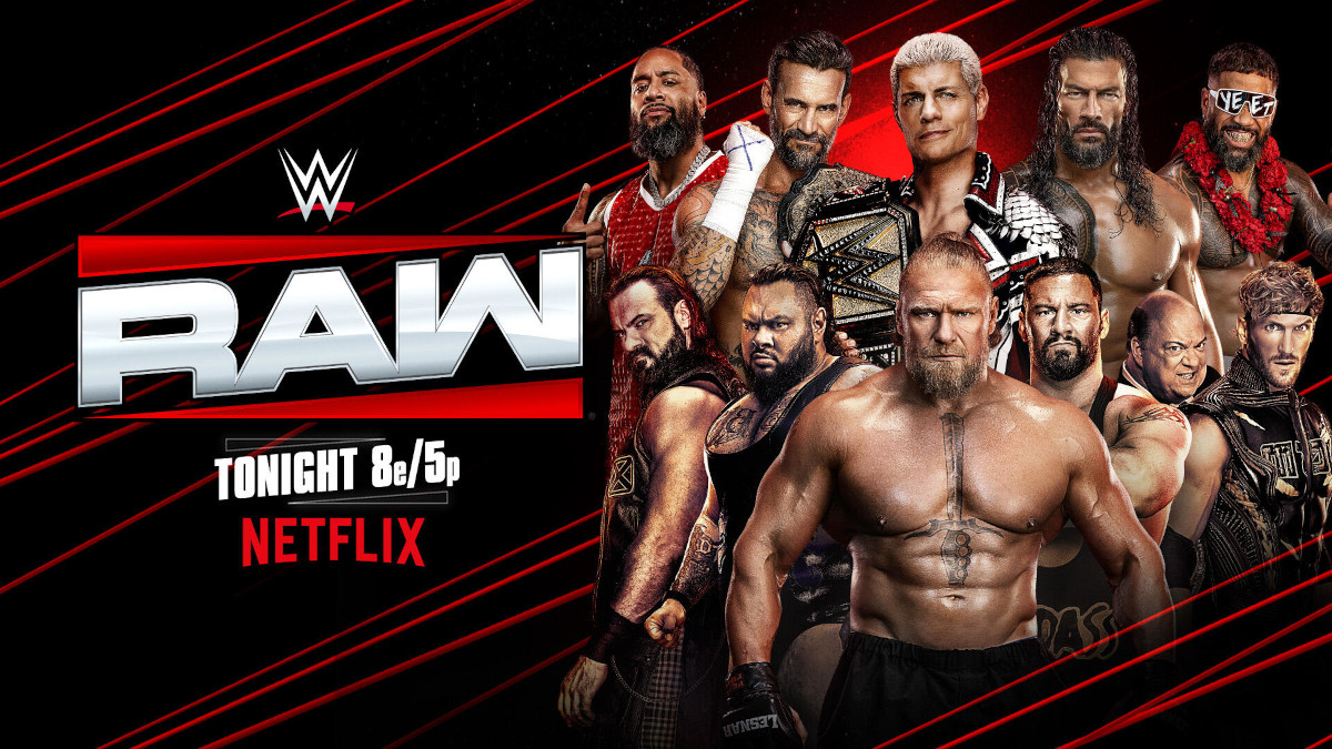World Heavyweight Champion CM Punk heads to the ring. Punk looks fired up as the crowd sings his theme as he goes to the ring. Punk stands between Rhodes and Reigns and asks, “Is it great to be alive on a Monday night in Oklahoma City or what?” Punk says, “OKC… acknowledge… US!” The crowd applauds. Punk says this is a good occasion to use Reigns’ gimmick because this is an all-star War Games. Punk doesn’t need Reigns’ word because last year at WarGames, he saved Reigns’ life. Reigns says four months later, Punk ruined it. Punk says he’s not worried about Reigns stabbing him in the back because he’d be stabbing his cousins’ backs. Punk says Reigns wouldn’t do that to his family. Rhodes says they’re all on the same team. Punk wonders how this became Rhodes’ team. This isn’t SmackDown or the USA Network. This is Monday Night, and this is Netflix. Rhodes can be the quarterback on Friday, but here, CM Punk is the champ.